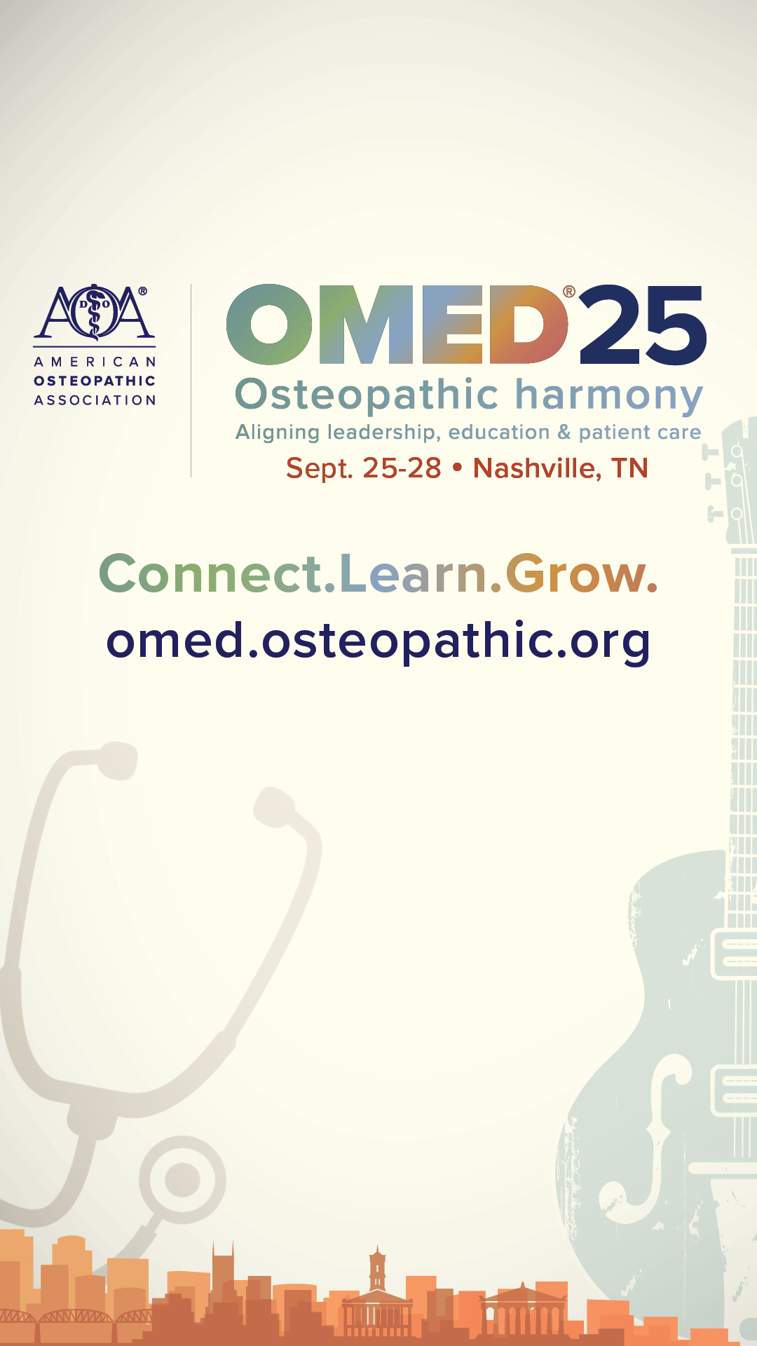Help us set the stage for OMED25 in the heart of Nashville, Tennessee, otherwise known as Music City, USA! You play a critical role in making this year’s OMED conference a success. The toolkit below provides downloadable assets to help promote the conference through your website, email, newsletters and social media. Please reach out to [email protected] to request assets in additional sizes or formats. Thank you for all you do to promote OMED and support the future of the osteopathic profession.