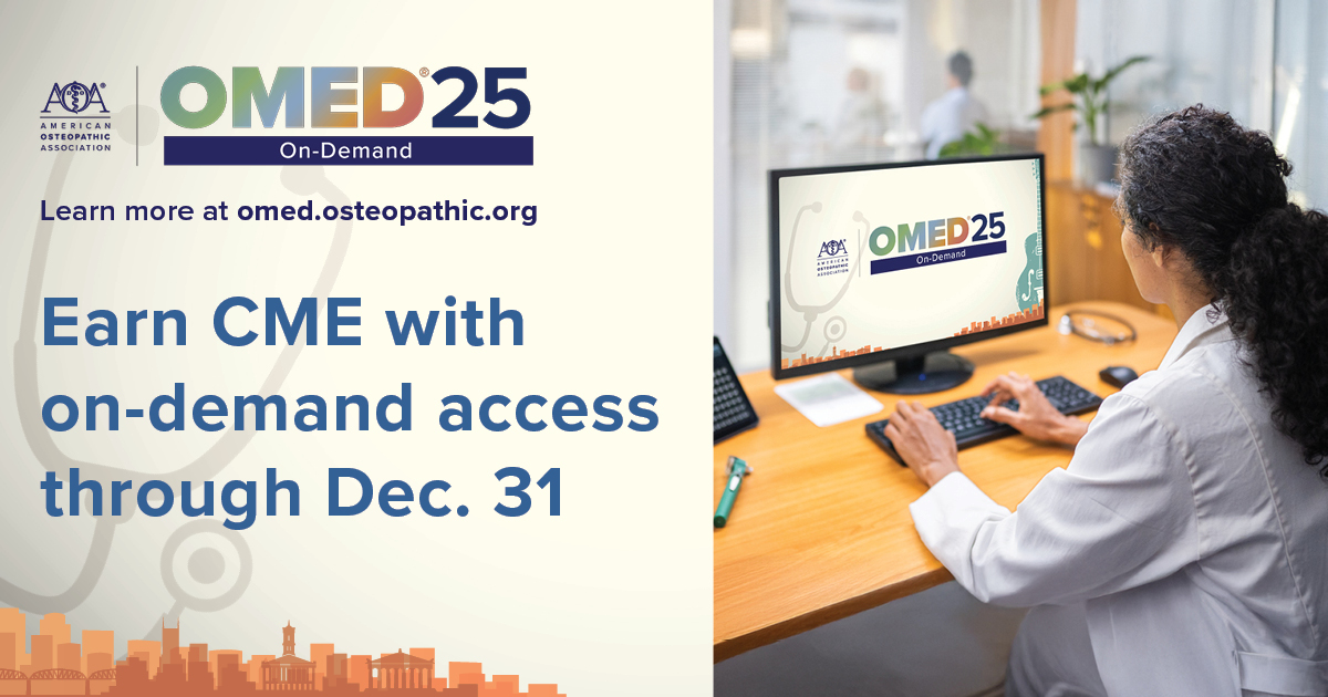 Help us spread the word about OMED On-Demand! You play a critical role in making OMED a success. The toolkit below provides downloadable assets to help promote the on-demand portion of the conference through your website, email, newsletters and social media. Please reach out to [email protected] to request assets in additional sizes or formats. Thank you for all you do to promote OMED and support the future of the osteopathic profession.